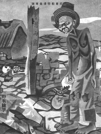 退张仃稿的是当时颇有名气的左翼漫画杂志,叫《生活漫画》,主编黄士英,上面经常发表左翼漫画家蔡若虹、张锷等人的作品。这家漫画杂志因进步的倾向和严肃的内容曾得到鲁迅的赞扬和支持。同为左翼、崇拜鲁迅的张仃,自然将它当作投稿的首选,挑了两幅自以为很不错的作品寄去,一幅是《买卖完成了》,揭露帝国主义和反动当局互相勾结,鱼肉人民,另一幅是《春劫》,表现罢工,没想到全退了回来,连个说明也没有。张仃惶惑了:我不也是左翼的吗?为什么会遭到拒绝?大概是自己水平不够吧,然而不发表作品,没有稿费,生活怎么办呢?